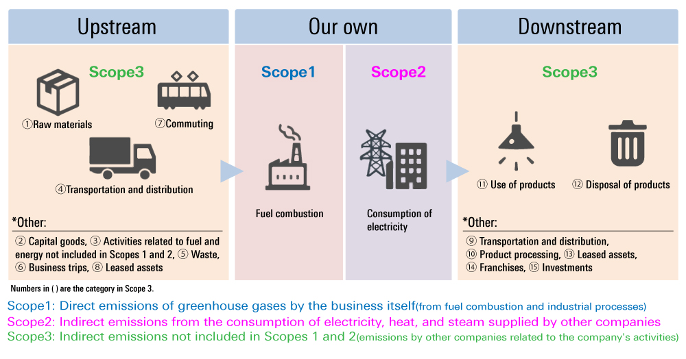 在2022财年,我们实行了 "清凉商务(Cool Biz)"和"暖装运动(Warm Biz)",并检查了空调设置,继续努力为应对全球变暖、节约能源和节约用电做出贡献。然而,由于新冠疫情结束后生产活动得以恢复,二氧化碳排放量与2021财年相比有所增加。